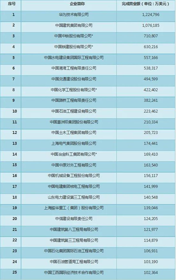 2月24日,商务部宣布《2020年我国对外承包工程营业完成营业额前100家企业》榜单。