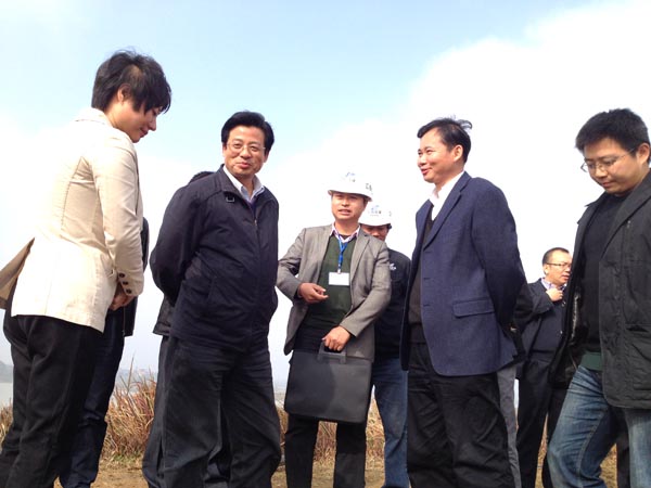九江市副市长赵伟一行到我公司承建的星子县蛟塘防洪工程检查指导事情