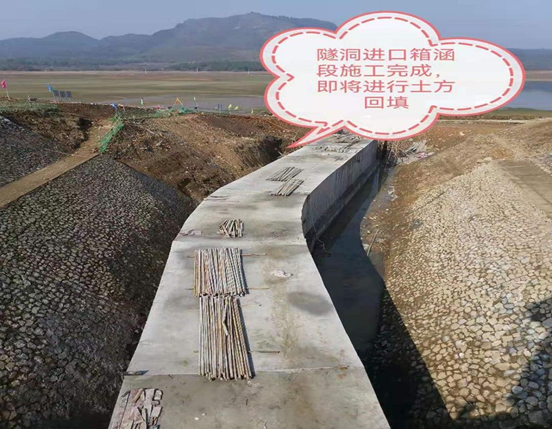 工程于2021年10月26日正式开工,现在已完成主要形象进度有:大坝坝坡修整、大坝左岸粘土铺盖和粘土斜墙、坝下涵管内衬钢管、隧洞入口箱涵段和泄洪渠1+200~1+975 m,其它项目均凭证妄想工期有序推进,圆满完成2021年度施工使命,为完成2022年清静度汛打下坚实的基础。