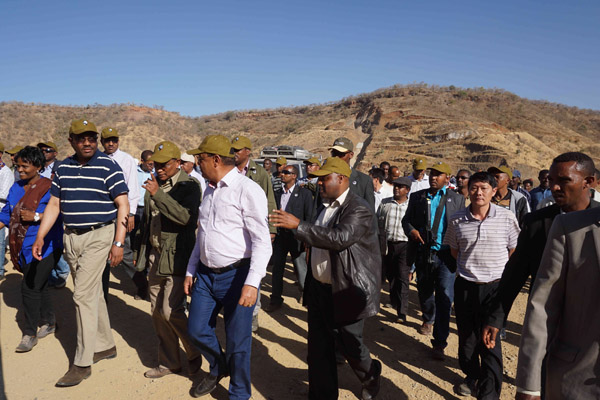 骏马奋蹄去,吉羊迎春来,当祖国神州大地在瑞雪中步入新春之时,埃塞俄比亚早已陶醉在干燥酷热的旱季。2月22日,埃塞俄比亚联邦共和国总统Mulatu Teshome左右、总理Haylemaryam Desalgne左右和联邦院议长Kasa Teklebrhane左右等国家向导人来到Wolkite工地视察。