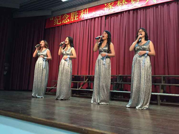各参赛单位演唱了一首首赞美祖国、纪念抗战胜利的歌曲。我公司代表队由四位女生献唱了一首《我爱这蓝色的海洋》,曲目悠扬、优美,赢得了在场观众一致的好评和热烈的掌声,弘扬了水建人高昂向上的精神,体现了钢铁意志之外的浪漫情怀,也唱出了对祖国人民的深深爱恋,并取得了第七名的好效果。本届合唱角逐在脍炙生齿的《五星红旗》歌曲声中落下了帷幕。