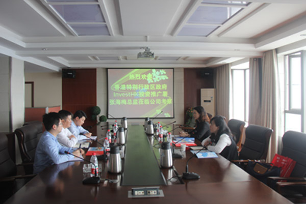 2016年5月23日,香港特殊行政区投资推广署张海梅总监、陈铭夏司理来到我司就香港营业的开展举行调研和指导,公司副总司理兼外洋公司执行董事张周平、总司理助理肖凯等相关职员加入座谈会。