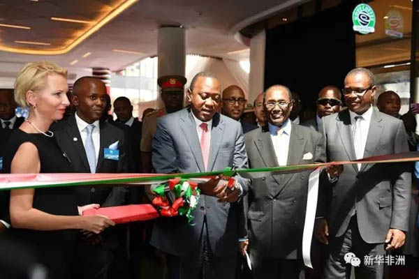 肯尼亚总统肯雅塔(前排中)为双河商城正式开业剪彩