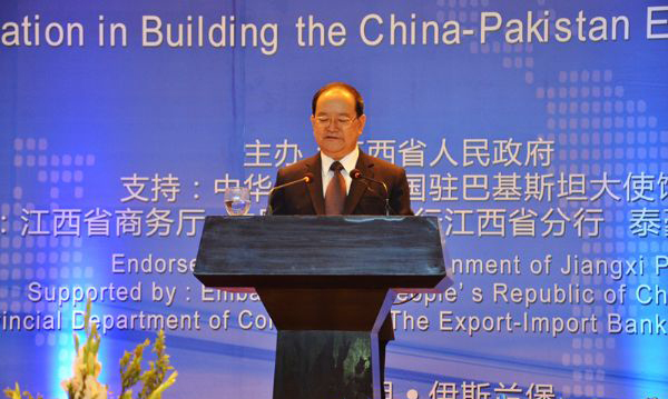 2017年4月20日,由江西省人民政府主理,中华人民共和国驻巴基斯坦大使馆支持,江西省商务厅、中国收支口银行江西省分行等承办的“央企-赣企相助建设中巴经济走廊恳谈会”在巴基斯坦首都伊斯兰堡召开,中共江西省委书记、江西省人大常委会主任鹿心社应邀出席聚会并致辞。