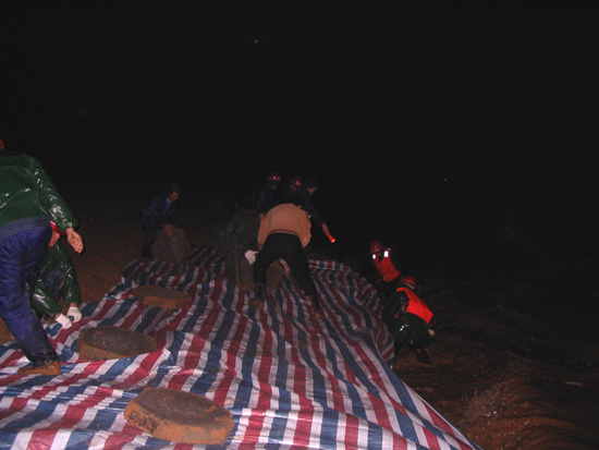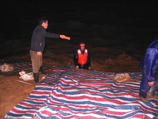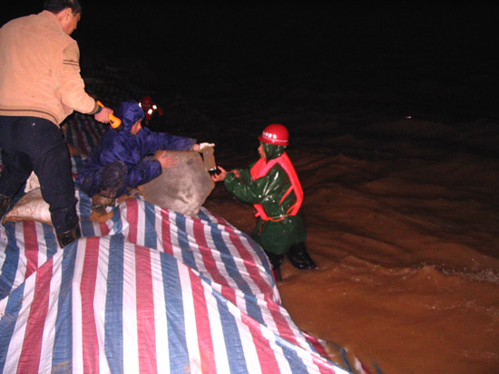 其时已是夜晚8时,天空下着小雨,漆黑的夜色让人伸手不见五指,大堤上泥泞的蹊径让人正常行走都难题,强烈的江风更是趁机作乱,奏乐在人身上,似乎都要把身上的衣服撕碎,骇浪肆意地拍打着岸堤,这么卑劣的情形怎样举行抢险作业?可是险情就是下令,各人都顾及不了这么多了,此时总司理王元旦既是指挥员又是战斗员,他向导项目部所有员工全力以赴投入了抗洪抢险的战斗当中。