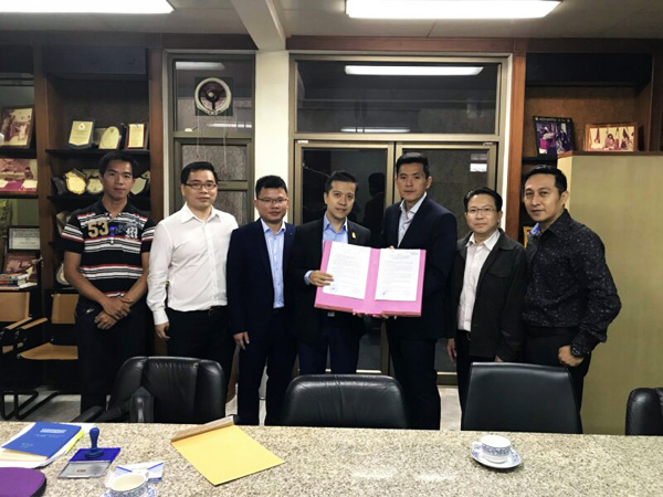 克日,泰国分公司与Summit Grade Ltd.,Part在曼谷市签署素叻它尼市政供水项目施工条约。分公司副总司理陆志荣、泰国相助方代表Jimmy和业主代表Peerapol先生配合出席签约仪式。