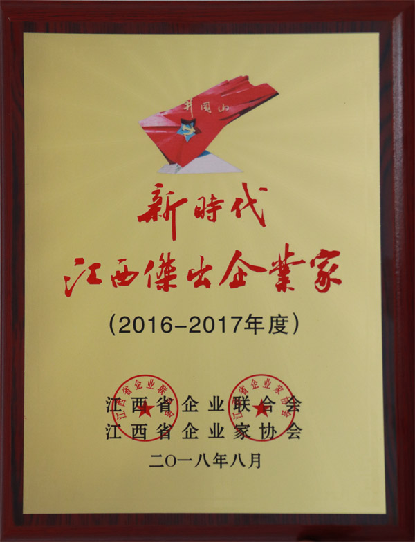 公司董事长王元旦获评2016—2017年度新时代江西优异企业家声誉称呼