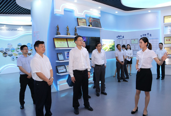首先,董事长王元旦约请蔡兴华行长一行旅行公司企业展厅,并向其先容了公司的生长历程、战略结构及相关效果,同时也先容了公司境内外项目、手艺立异及社会责任等方面的情形。