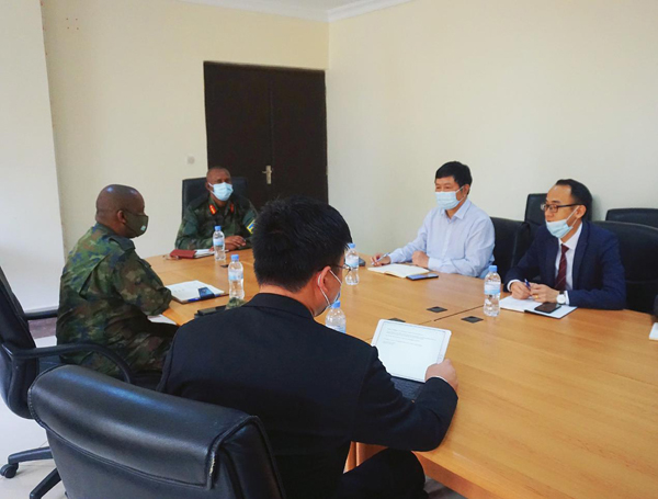 张周平一行会见了军事学院项目业主--卢旺达军事学院司令。双方就疫情时代项目的施工情形举行了充分的交流,气氛热烈融洽。双方很是珍惜和重视此次相助,体现会全力支持推动项目希望,并期待两个团队在日后事情中能够继续坚持起劲有用的相同,务实地解决施工难点,尽早完成预期修建施工目的。