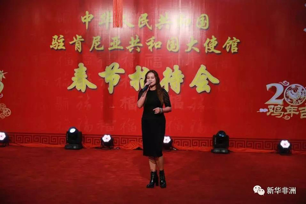 江西水利水电建设有限公司肯尼亚分公司应邀加入了一年一度的中国驻肯尼亚大使馆的迎春晚会!公司驻肯尼亚分公司总司理贺翔,副总司理彭红军出席了晚会!肯尼亚分公司向晚会选送的精彩节目——女声独唱《走天涯》,获得了在场观众的阵阵掌声,给出席晚会的向导及嘉宾留下了深刻的印像。