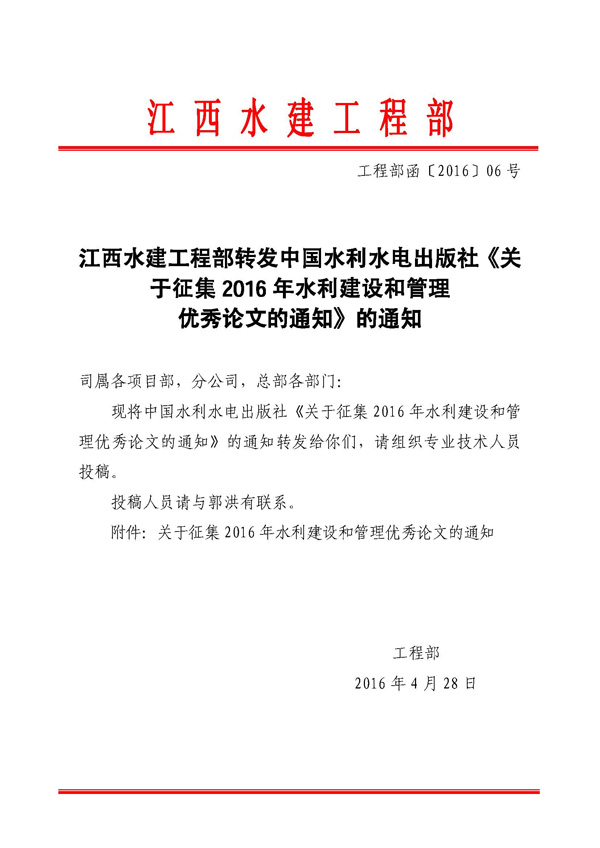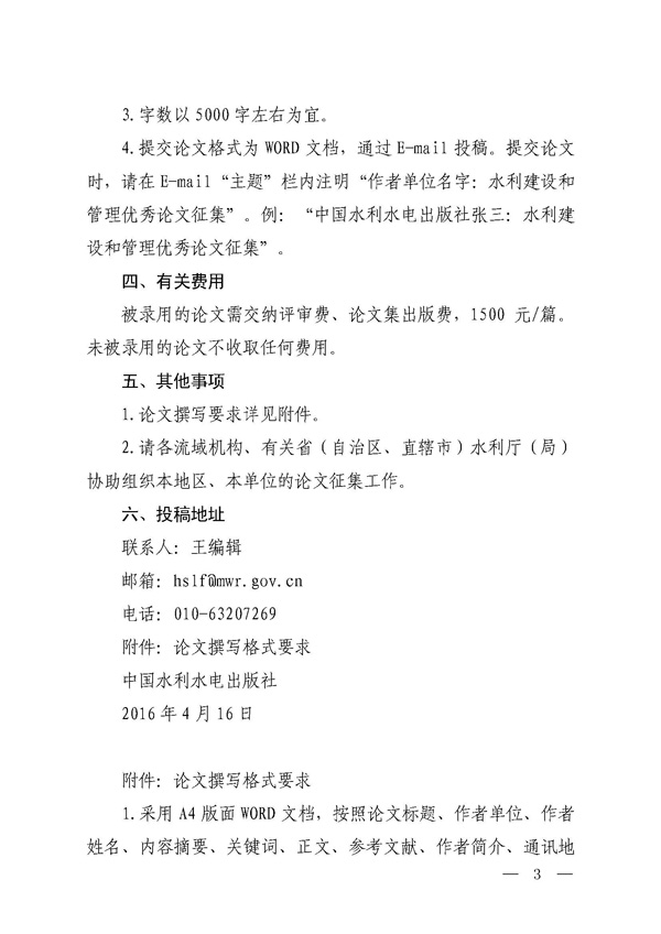 转发征集2016年水利建设和治理优异论文的通知