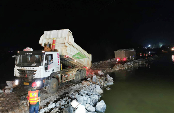 7月13日下昼,公司完成封堵事情手艺丈量和封堵事情手艺计划制订,7月13日晚上,抢险手艺、施工职员及装备陆续进场,并调配块石、砂砾石等种种质料进场。决口封堵接纳南北两岸同时进占方法施工, 7月14日中午14时最先进占施工,经由两天两夜一连55个小时施事情业,于7月16日晚上21时43分,完成决口合拢,比预计完工时间提前50小时。